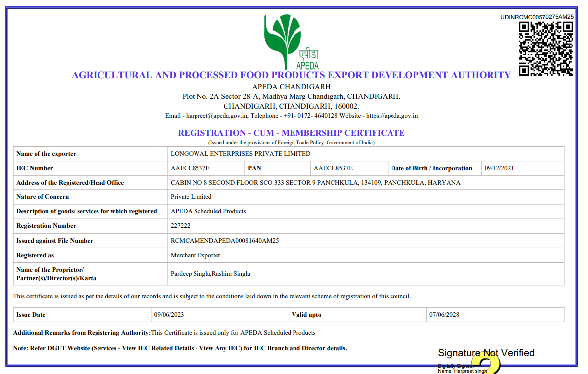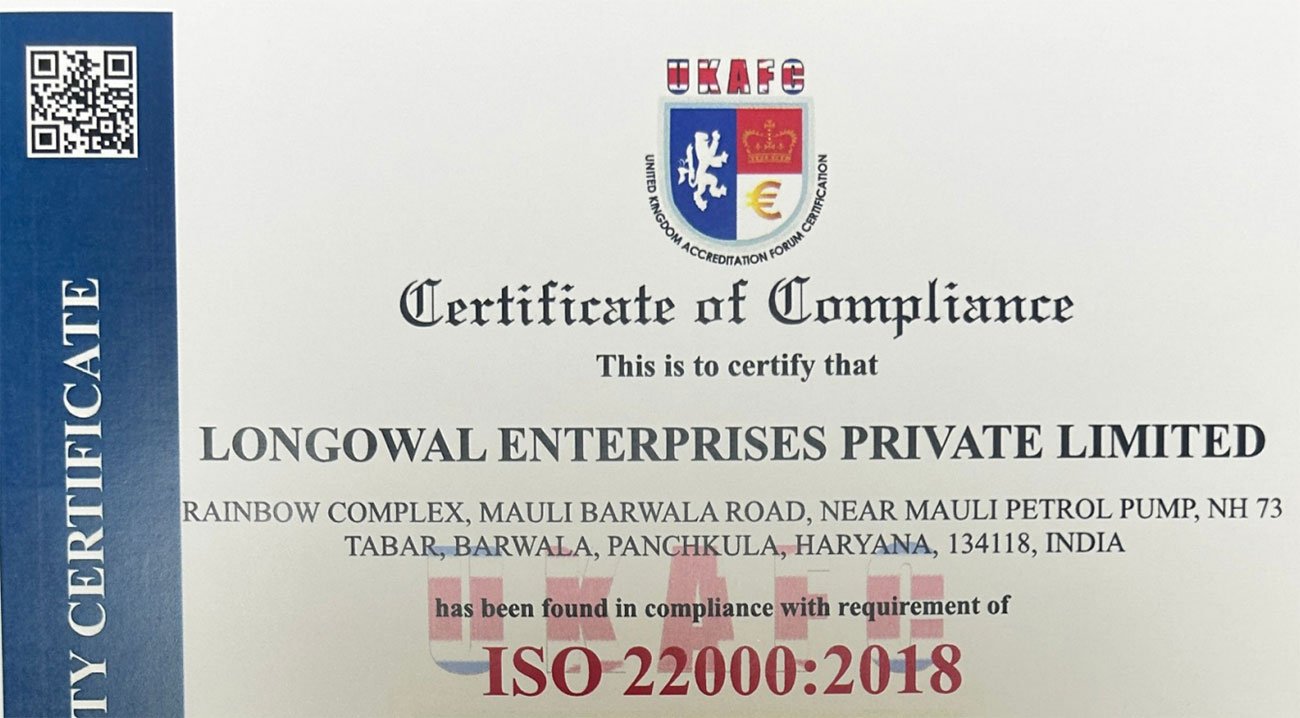 At Longowal Enterprises Pvt. Ltd., quality is not just a promise — it’s the foundation of everything we do. From sourcing to processing and packaging, our operations strictly adhere to global feed safety and quality benchmarks. Our certifications stand as a testament to our dedication to delivering consistently safe, reliable, and performance-driven animal feed solutions.